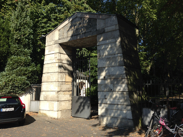 Ganz besonders eindrucksvoll und auch auffällig sind die massiven Eingangstore des Melaten-Friedhofs. Wollen Sie sich direkt einmal gruseln, bevor Sie den Friedhof betreten? Dann schauen Sie sich einmal die Schrifttafel auf einem dieser Eingangs-Tore an, denn dort kann man folgendes lesen "Was die Erde gab, begehrt sie wieder - und was Staub gewesen, wird zu Staub - doch die Seele stieg vom Himmel wieder - wohl der Gottheit keines Todes raub - unsere Thränen fallen auf den den Hügel - der Geliebten Überrest deckt - doch des Glaubens goldbeschwingter Flügel - trägt uns aufwärts, wo kein Grab - mehr schreckt". Und? Haben Sie schon eine Gänsehaut?
